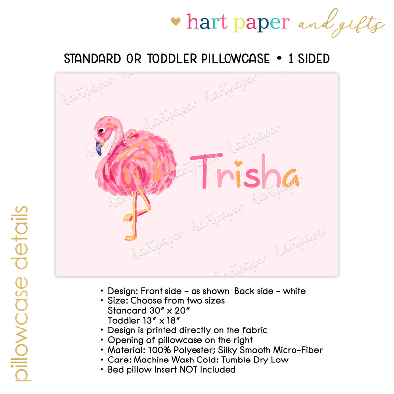 Pink Flamingo Personalized Custom Pillowcase • Standard or Toddler Size