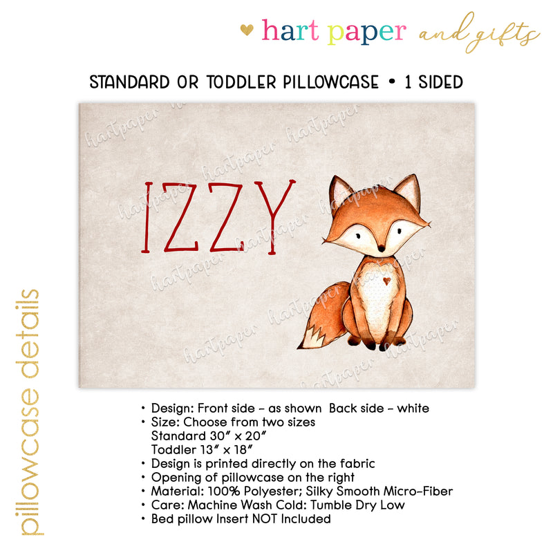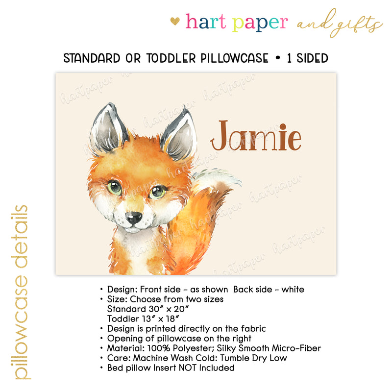 Fox Personalized Custom Pillowcase • Standard or Toddler Size
