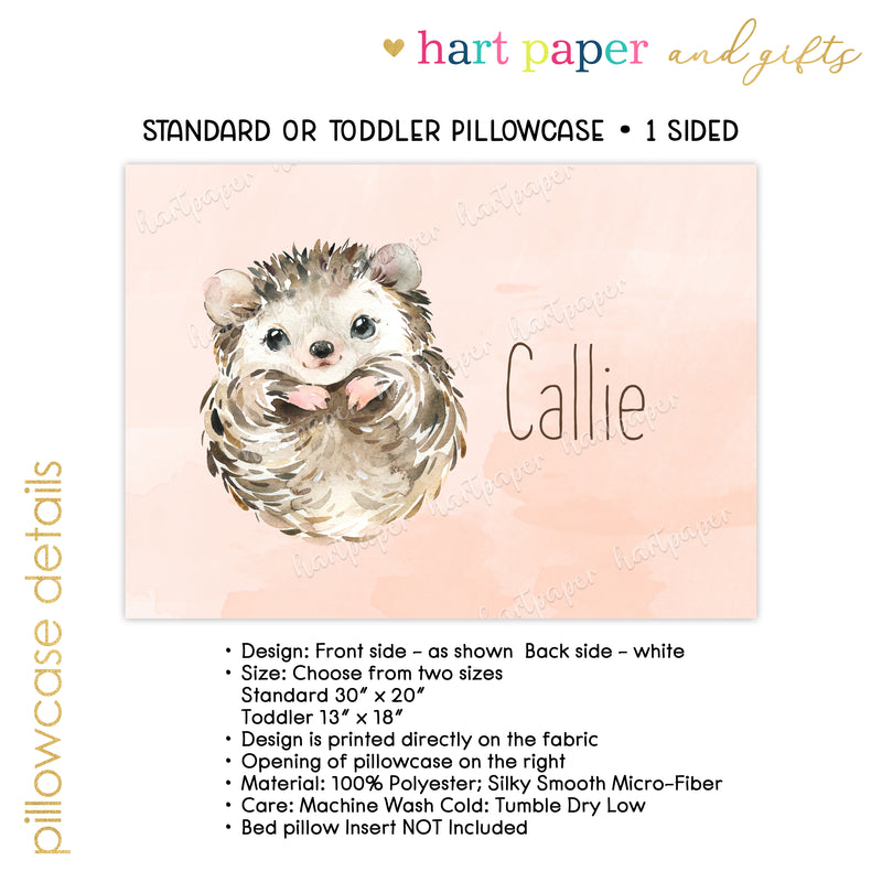 Hedgehog Personalized Custom Pillowcase • Standard or Toddler Size