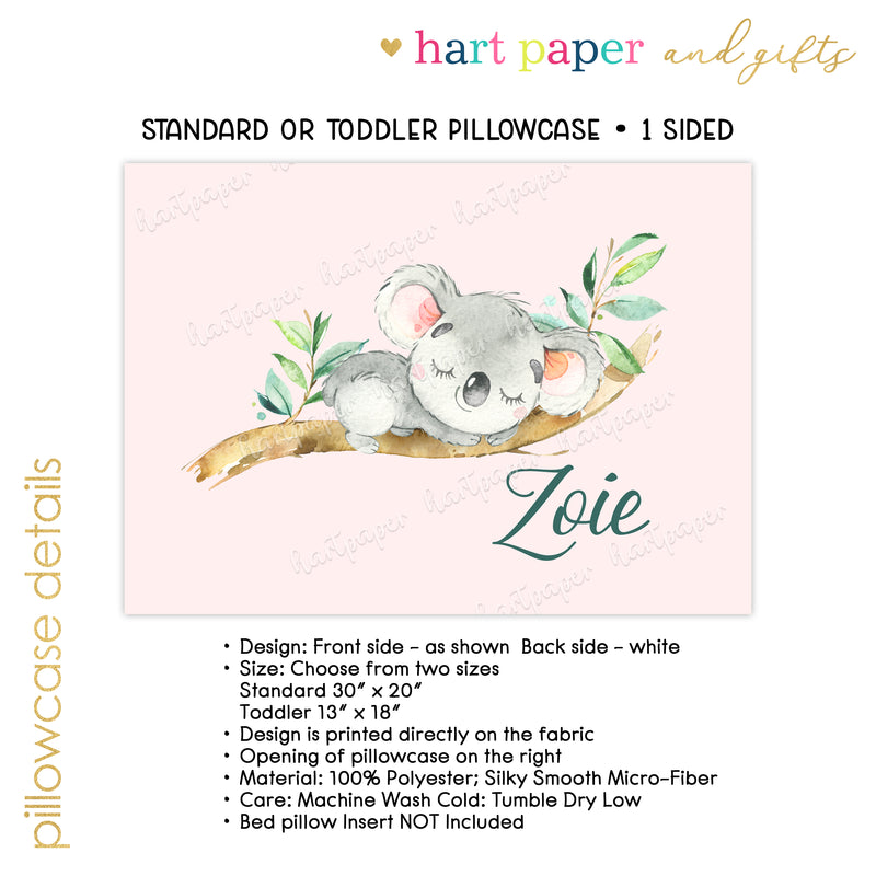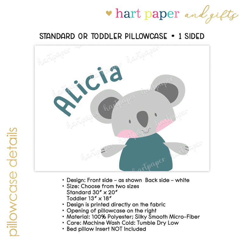 Koala Bear Personalized Custom Pillowcase • Standard or Toddler Size