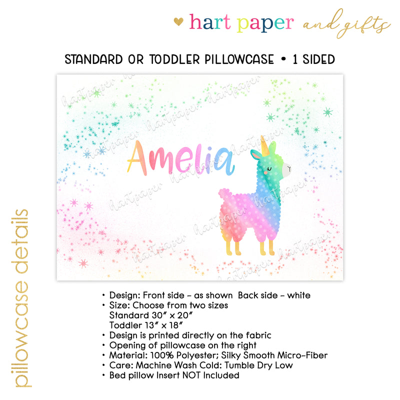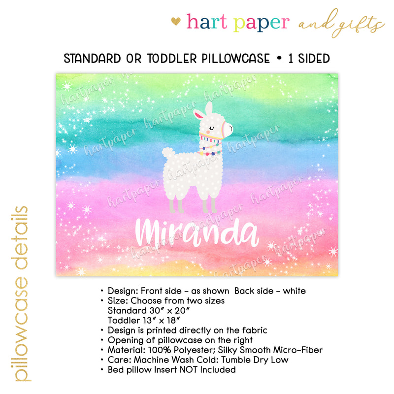 Rainbow Llama Personalized Custom Pillowcase • Standard or Toddler Size