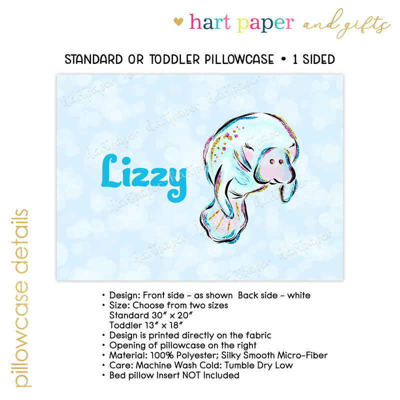 Manatee Personalized Custom Pillowcase • Standard or Toddler Size