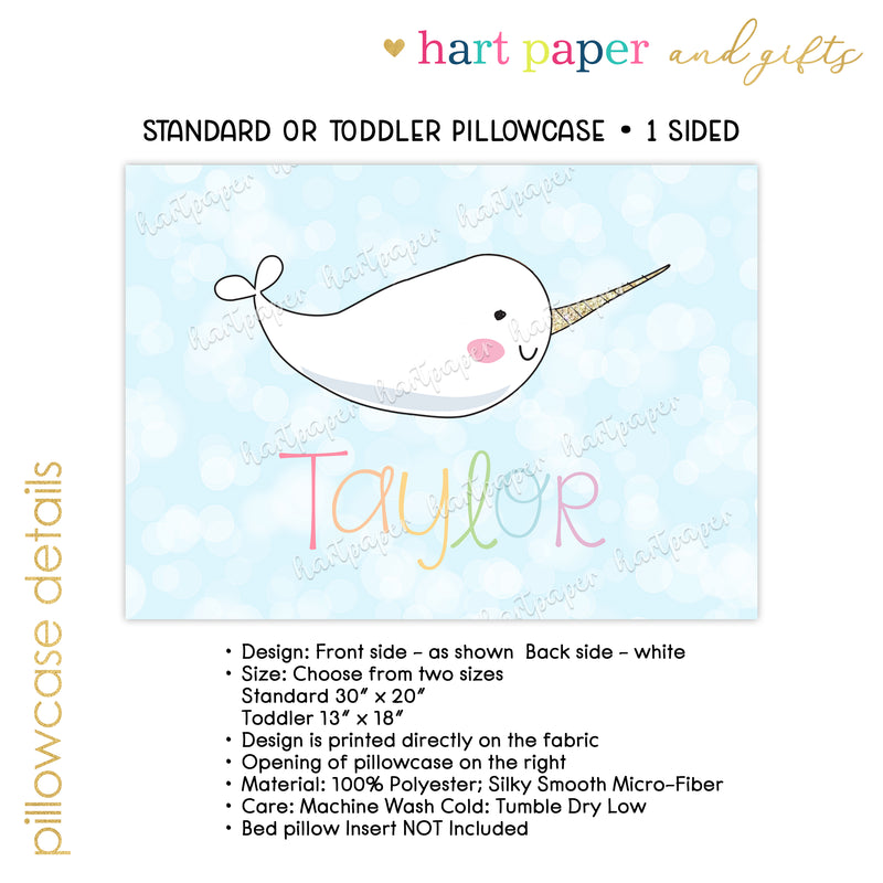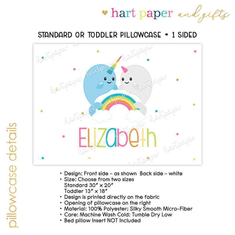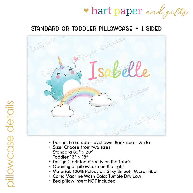 Narwhal Rainbow Personalized Custom Pillowcase • Standard or Toddler Size