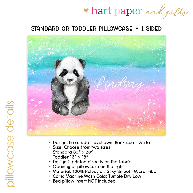 Rainbow Panda Bear Personalized Custom Pillowcase • Standard or Toddler Size