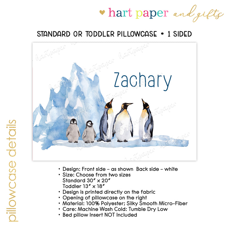 Penguins Personalized Custom Pillowcase • Standard or Toddler Size