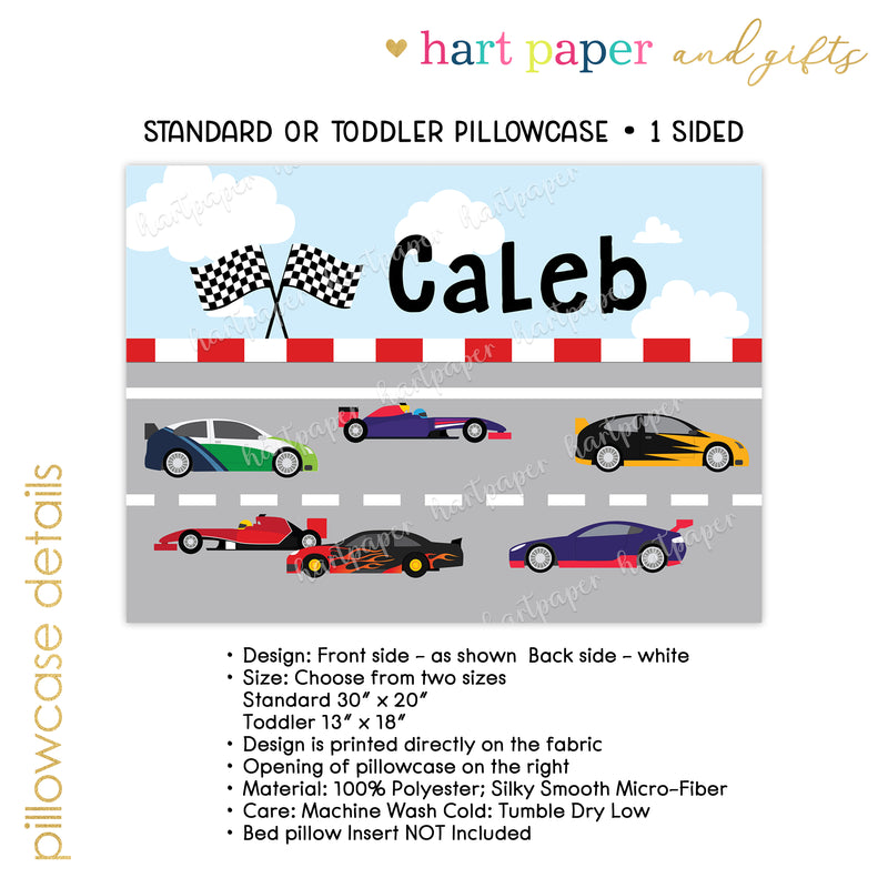 Race Cars Personalized Custom Pillowcase • Standard or Toddler Size