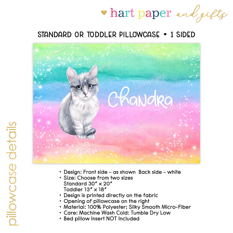 Rainbow Cat Personalized Custom Pillowcase • Standard or Toddler Size