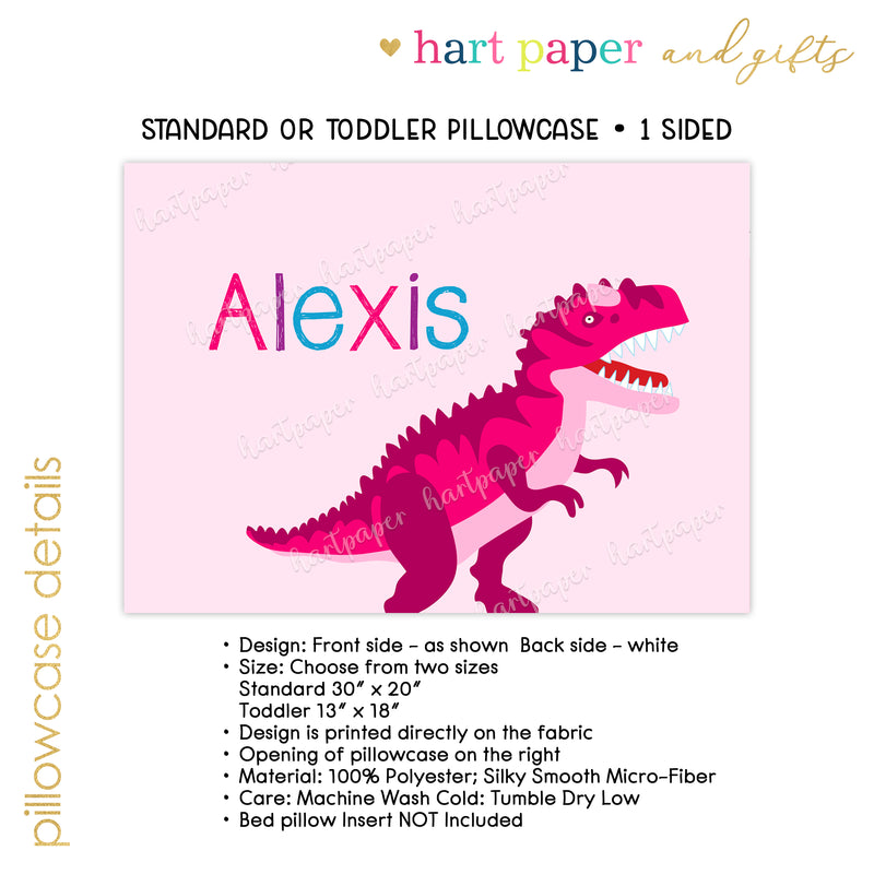 Pink Dinosaur Dino Personalized Custom Pillowcase • Standard or Toddler Size