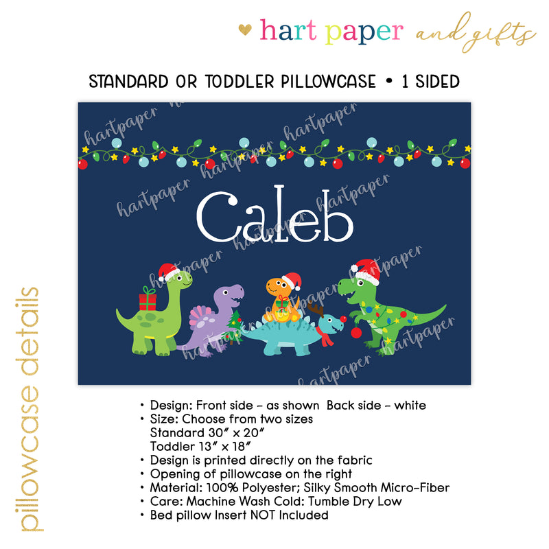 Christmas Dinosaur Dino Personalized Custom Pillowcase • Standard or Toddler Size