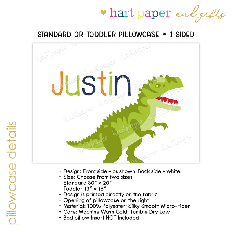 T-Rex Dinosaur Dino Personalized Custom Pillowcase • Standard or Toddler Size
