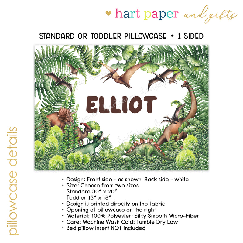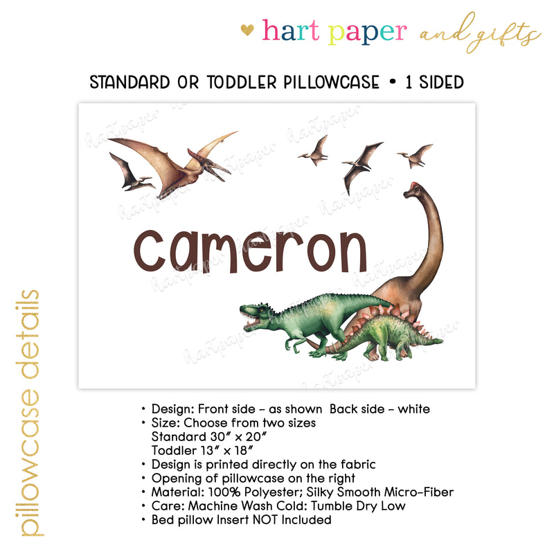 Dinosaur Dino Personalized Custom Pillowcase • Standard or Toddler Size