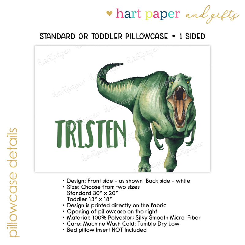 Tyrannosaurus Rex Dinosaur Dino Personalized Custom Pillowcase • Standard or Toddler Size