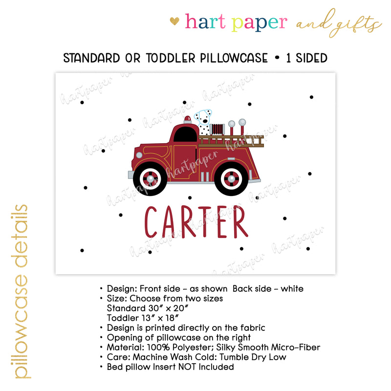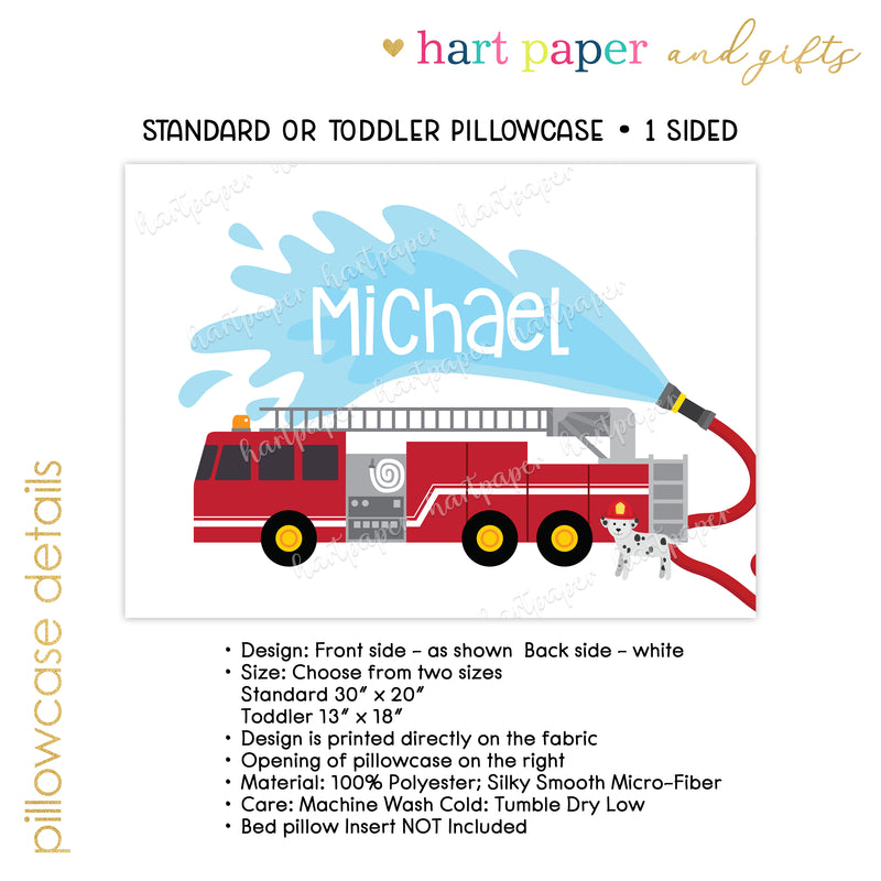 Firetruck Personalized Custom Pillowcase • Standard or Toddler Size