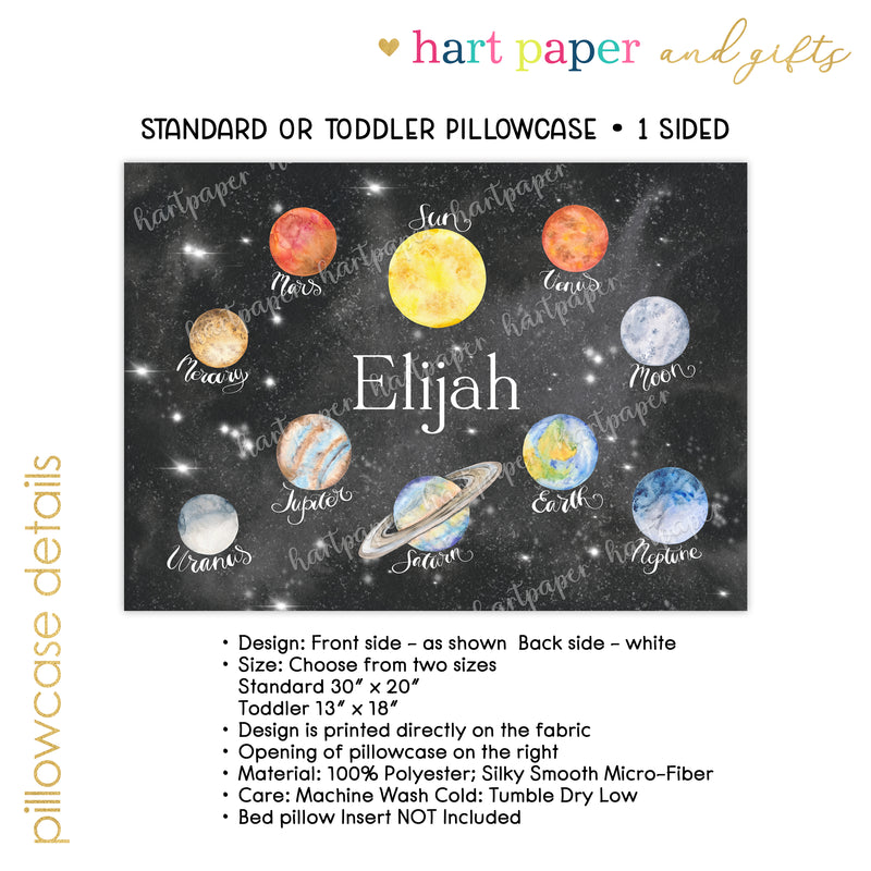 Planets Space Personalized Custom Pillowcase • Standard or Toddler Size