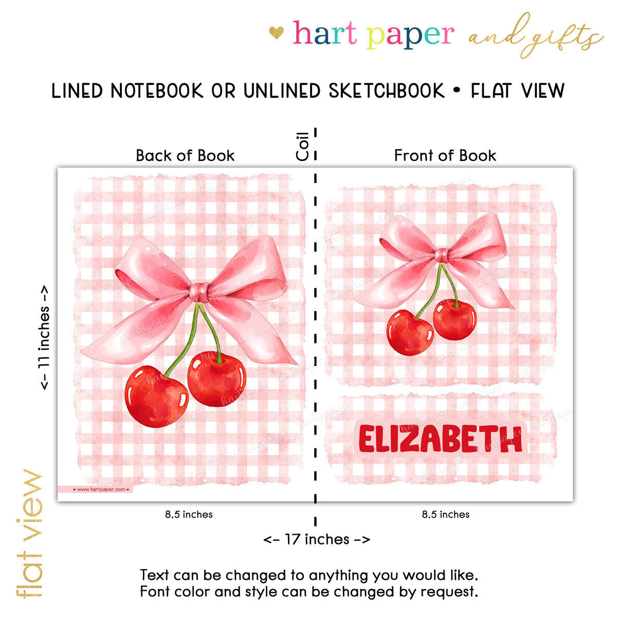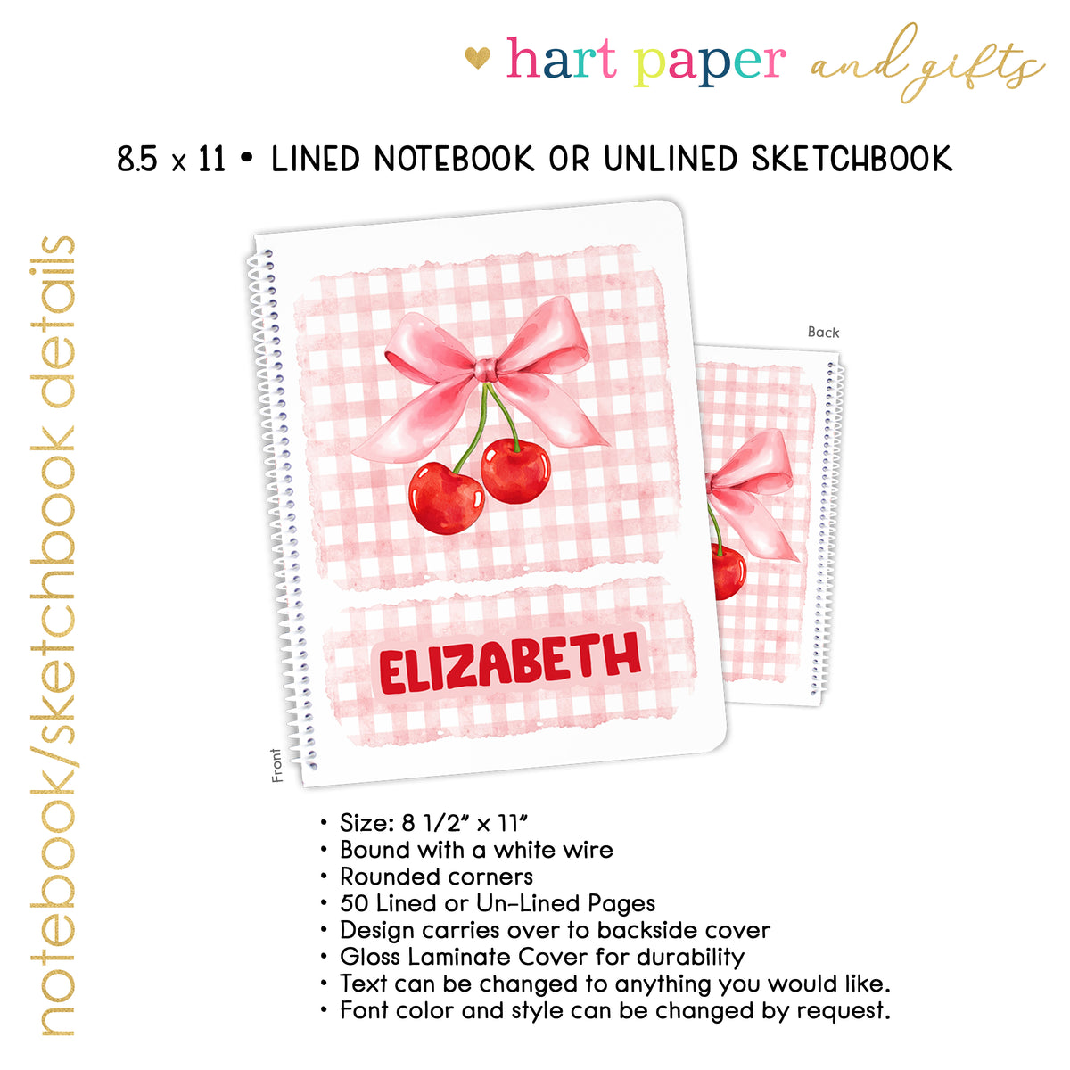 Cherry Cherries Gingham Personalized Custom Notebook or Sketchbook • School Office Supplies