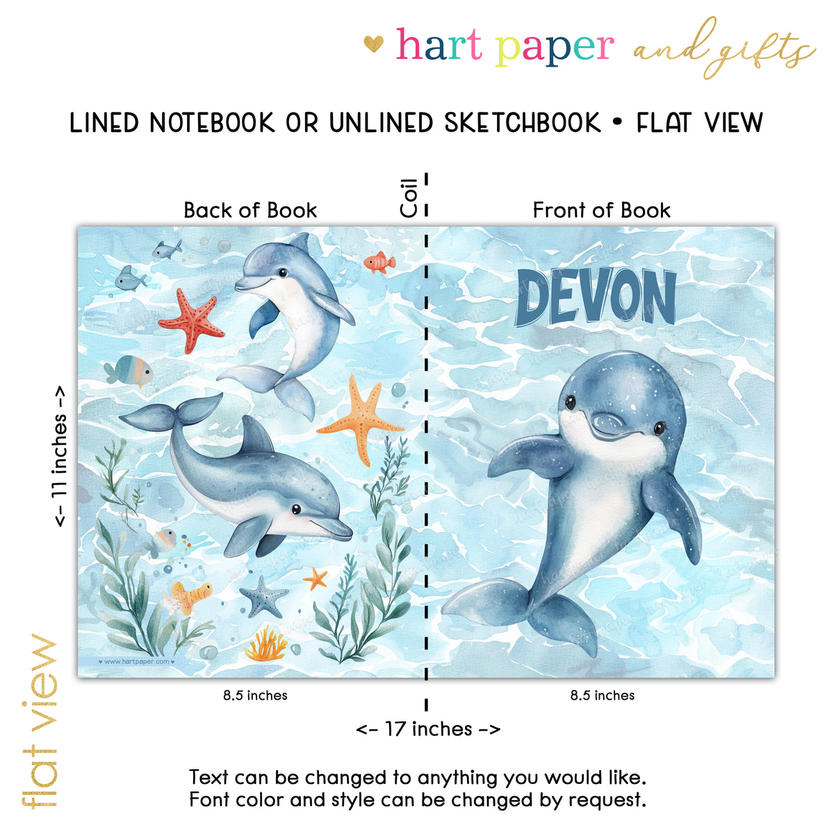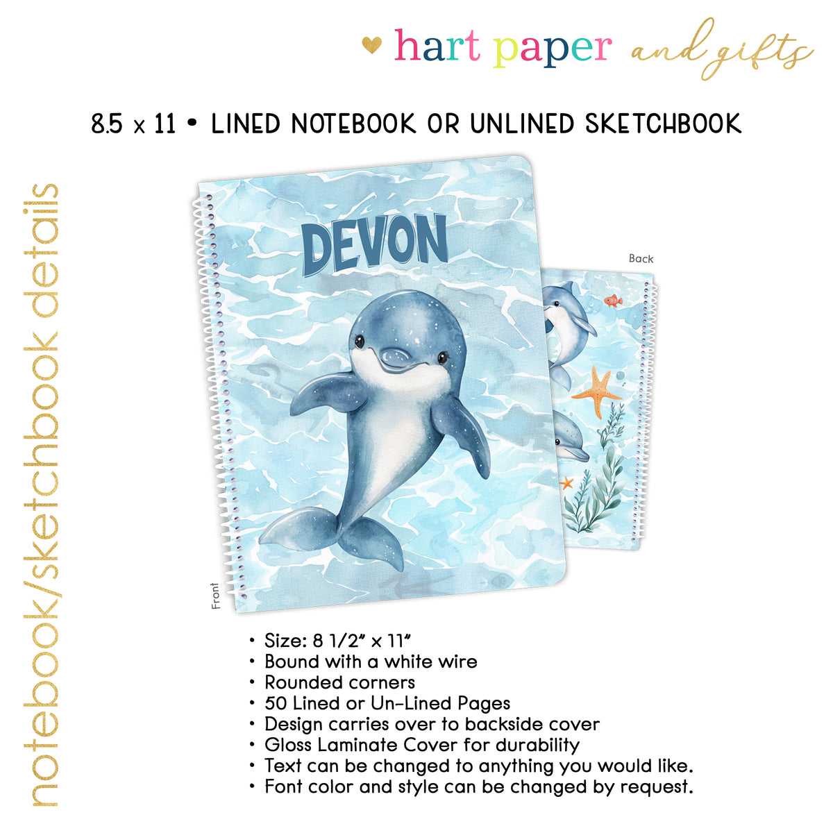 Dolphin Personalized Custom Notebook or Sketchbook • School Office Supplies
