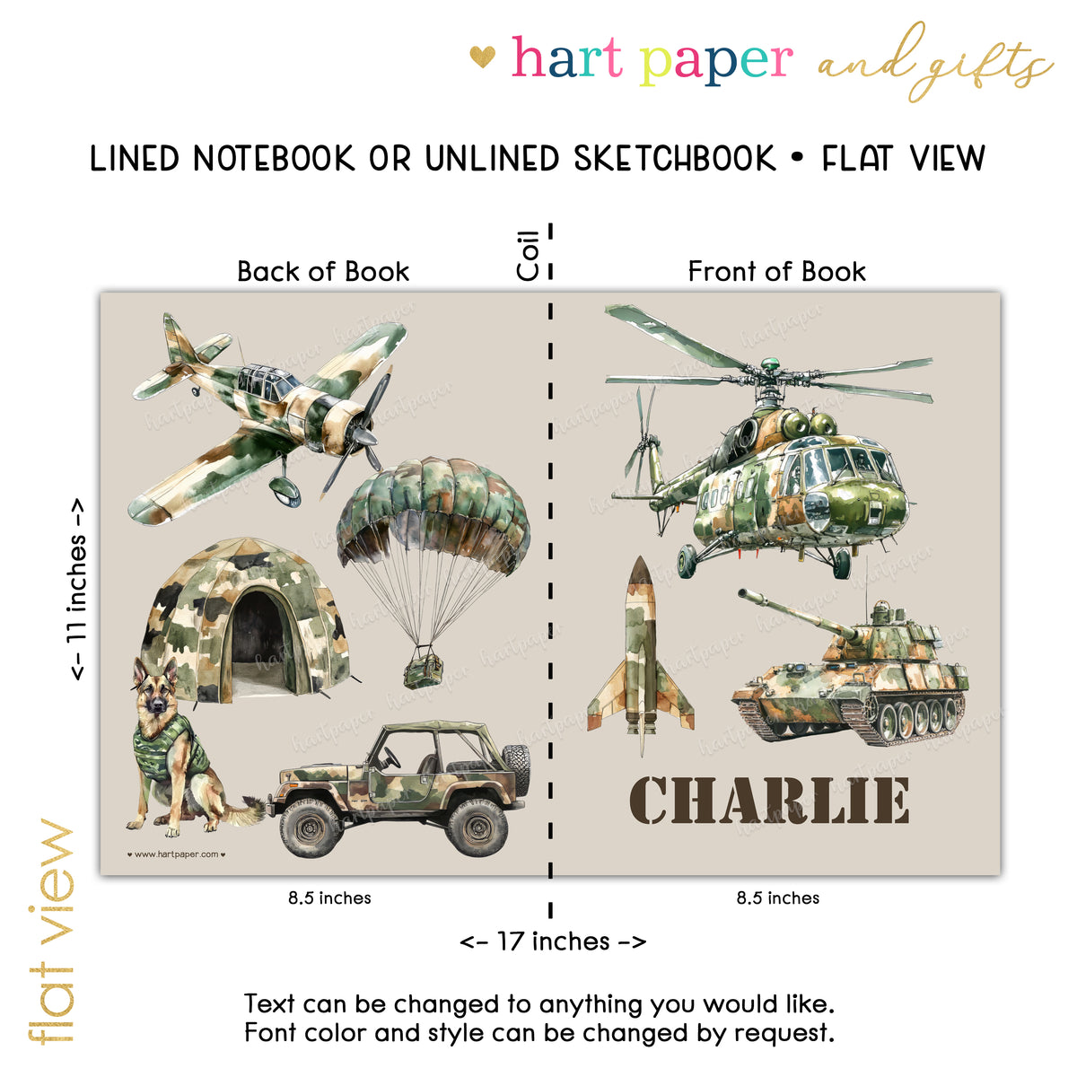 Helicopter Military Camouflage Camo Personalized Custom Notebook or Sketchbook • School Office Supplies