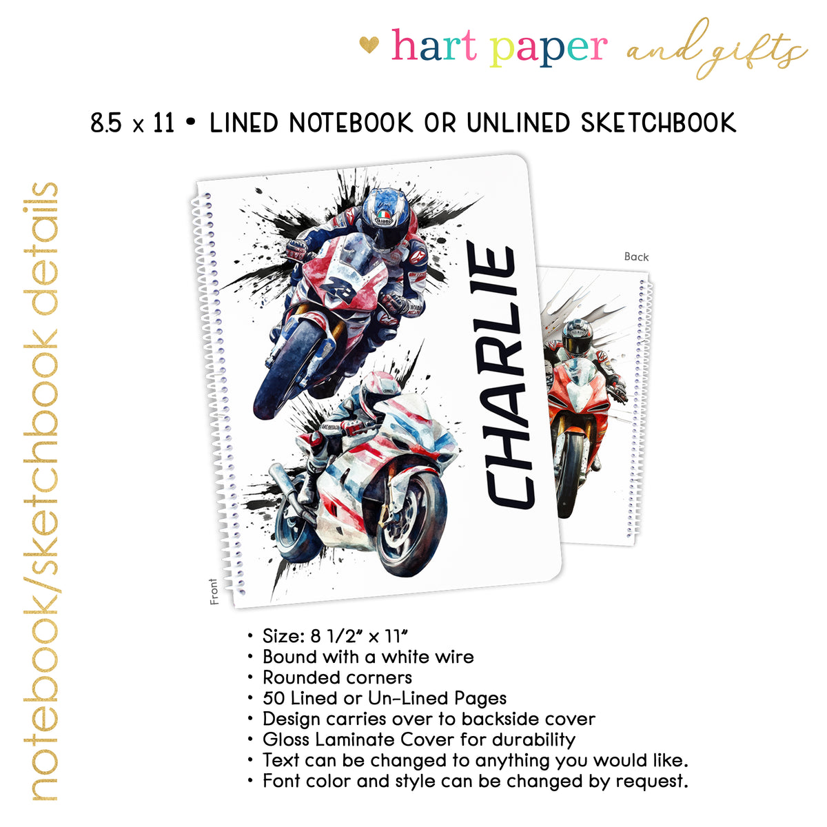 Motorcycle Bike Sports Personalized Custom Notebook or Sketchbook • School Office Supplies