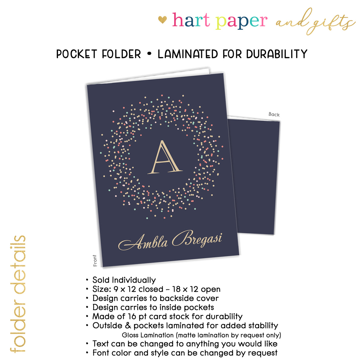 Add a personal touch to your organization with our custom 2 pocket folder, featuring your name, initials, or monogram. Whether you're at school, home, or the office, this personalized folder is a stylish and practical way to keep papers, assignments, and important documents neatly organized and easy to find.