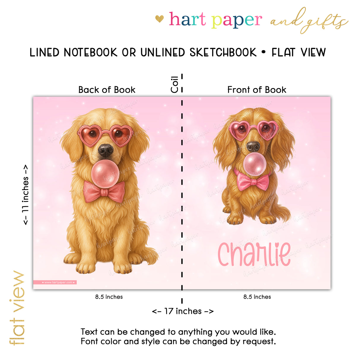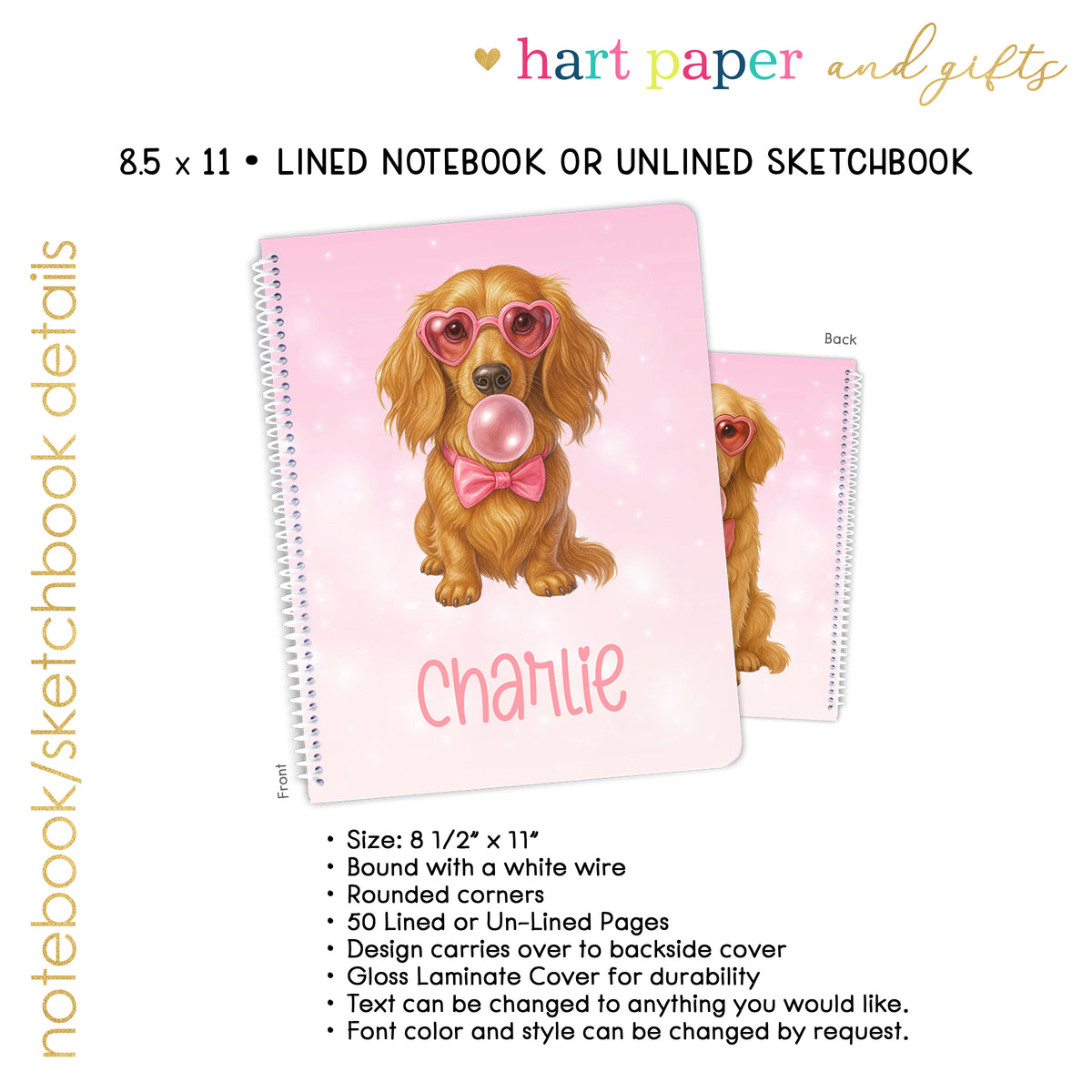 Pink Dog Puppy Personalized Custom Notebook or Sketchbook • School Office Supplies
