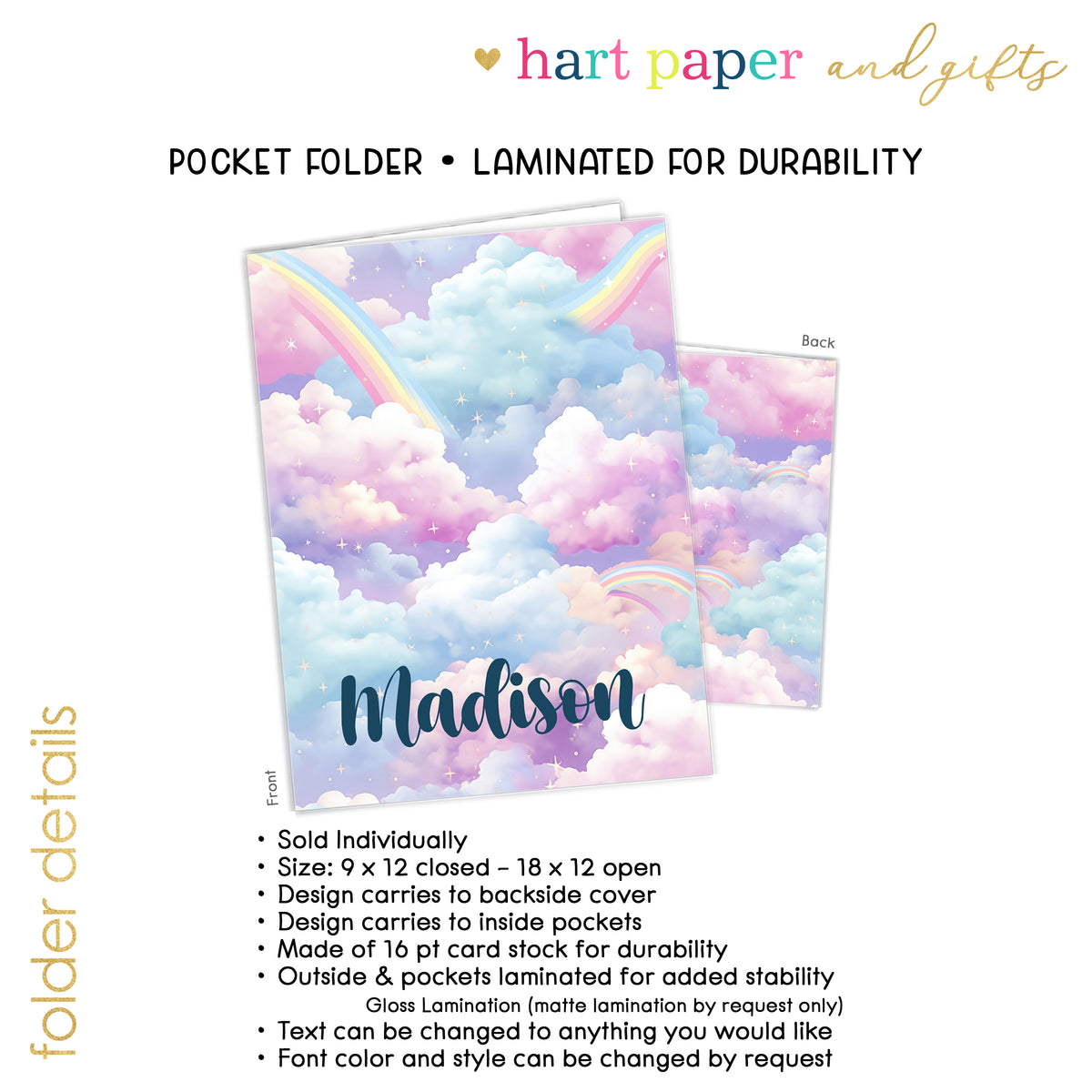 Rainbow Clouds Personalized Custom 2-Pocket Folder • School Office Supplies