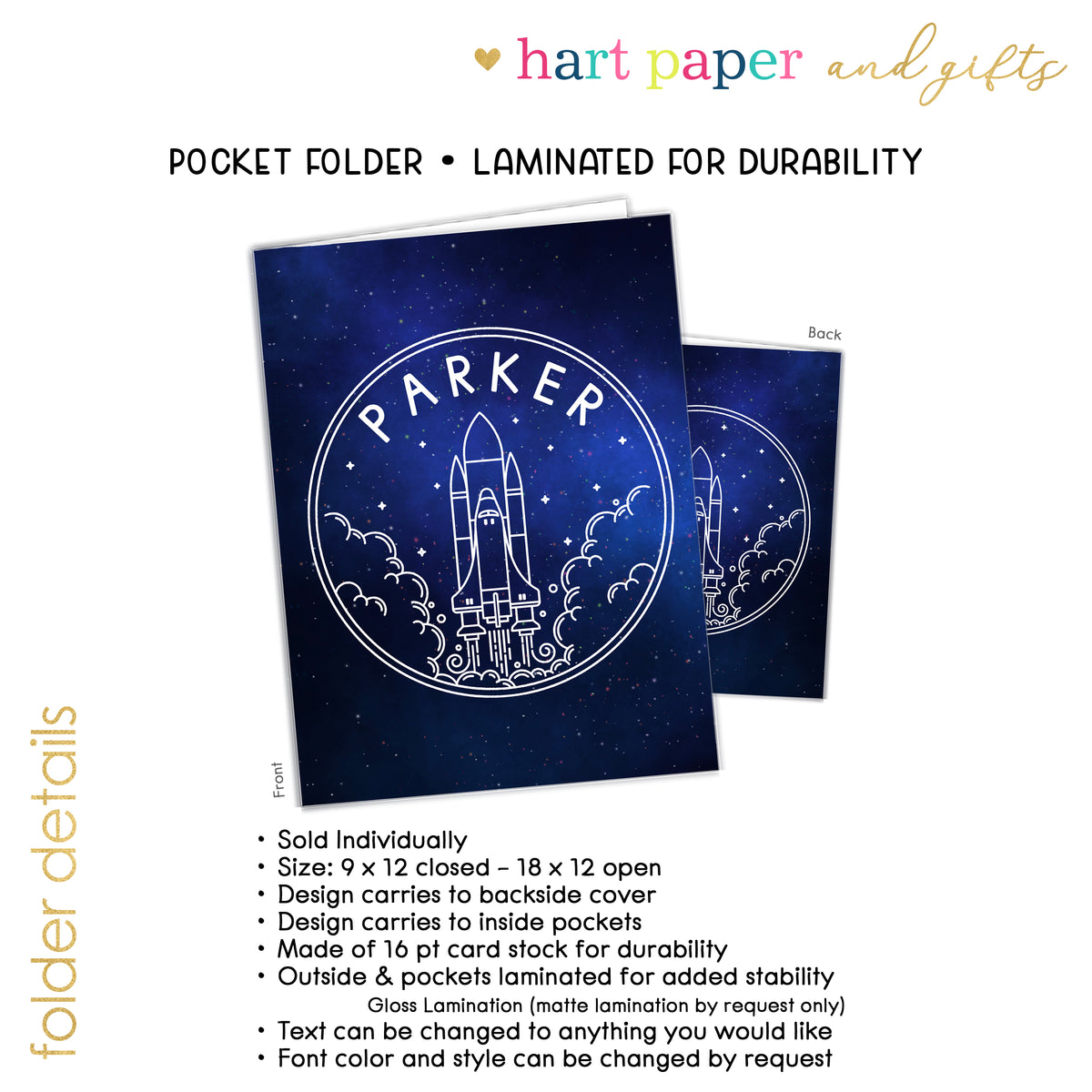Rocket Ship Personalized Custom 2-Pocket Folder • School Office Supplies