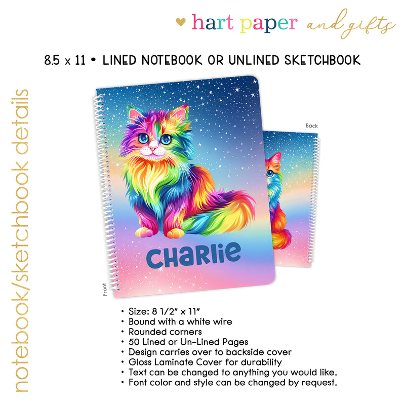 Rainbow Cat Kitten Personalized Custom Notebook or Sketchbook • School Office Supplies