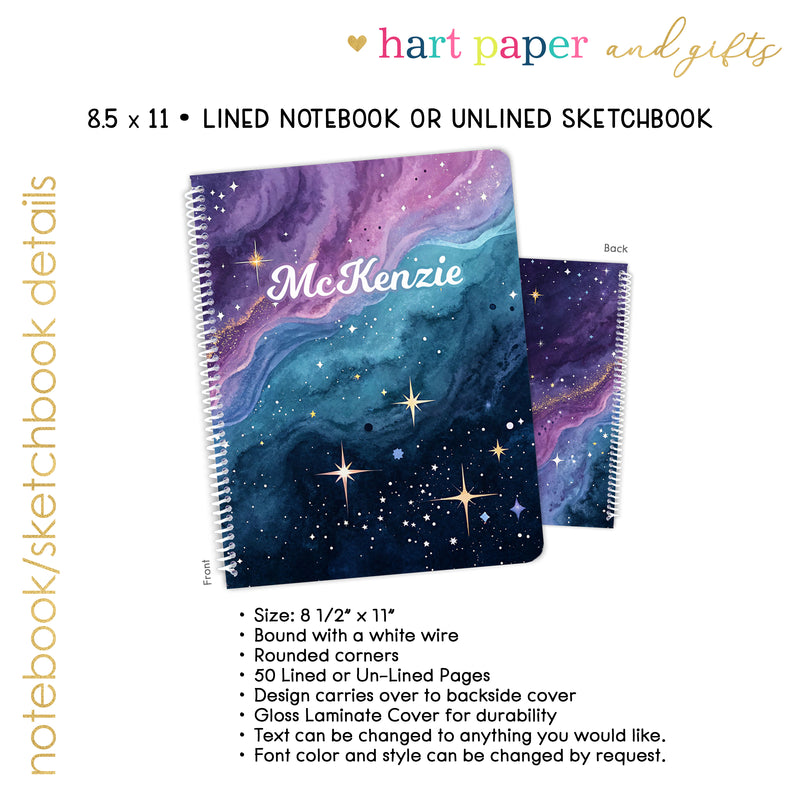 Galaxy Stars Space Personalized Custom Notebook or Sketchbook • School Office Supplies