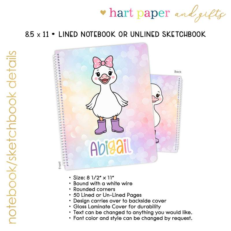 Rainbow Silly Goose Geese Personalized Custom Notebook or Sketchbook • School Office Supplies