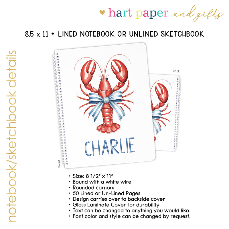 Lobster Bow Coquette Personalized Custom Notebook or Sketchbook • School Office Supplies