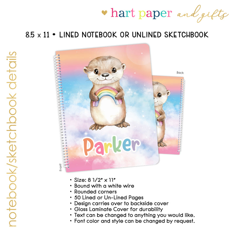 Rainbow Otter Personalized Custom Notebook or Sketchbook • School Office Supplies