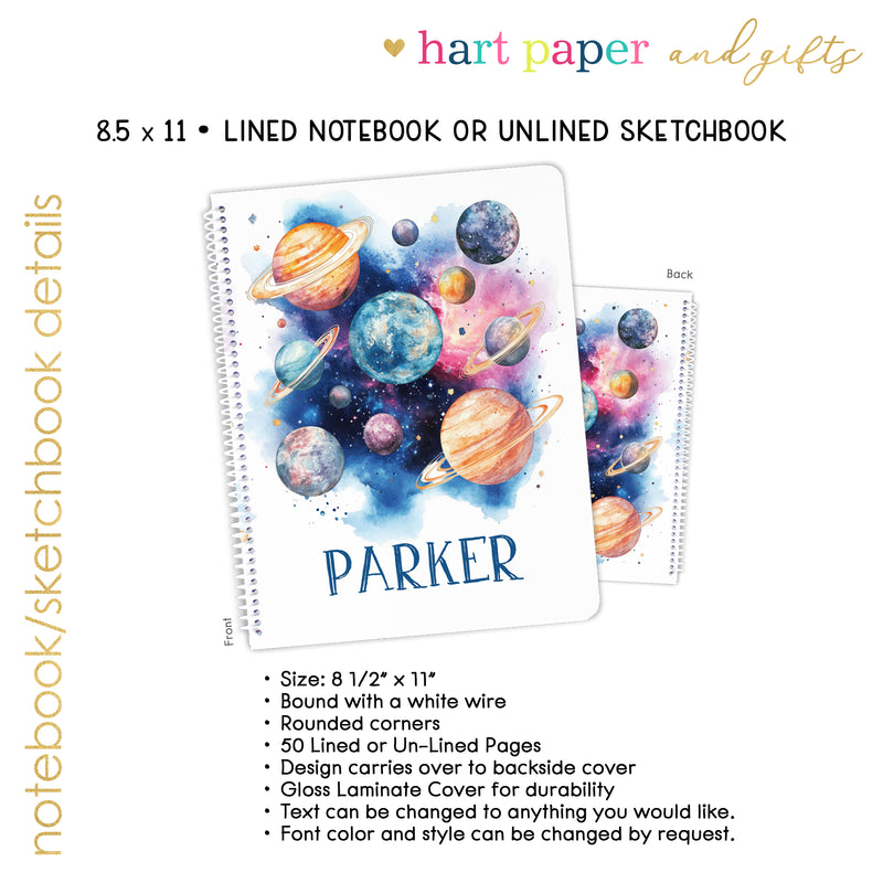 Planets Space Personalized Custom Notebook or Sketchbook • School Office Supplies