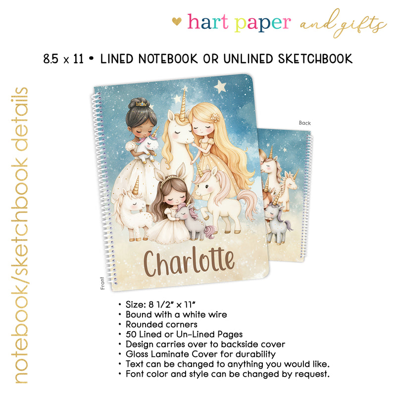 Princess Unicorn Rainbow Personalized Custom Notebook or Sketchbook • School Office Supplies