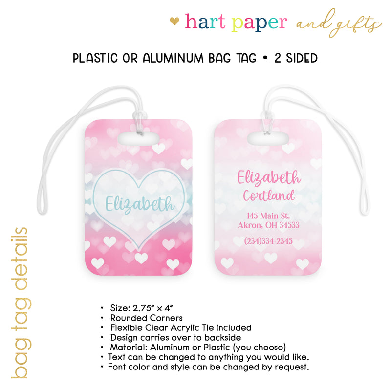Blue & Pink Sparkles Luggage Bag Tag Personalized Custom