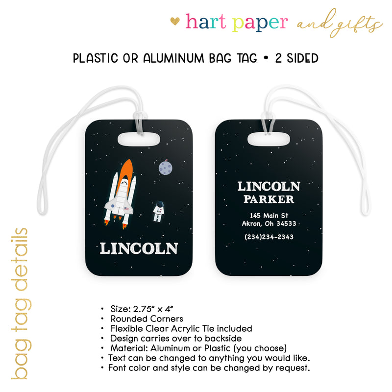Rocket Ship Astronaut Luggage Bag Tag Personalized Custom