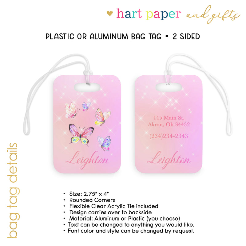 Rainbow Butterflies Luggage Bag Tag Personalized Custom