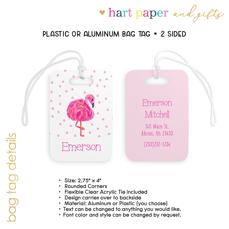 Pink Flamingo Luggage Bag Tag Personalized Custom