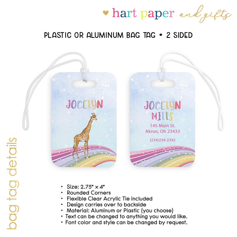Giraffe Rainbow Luggage Bag Tag Personalized Custom