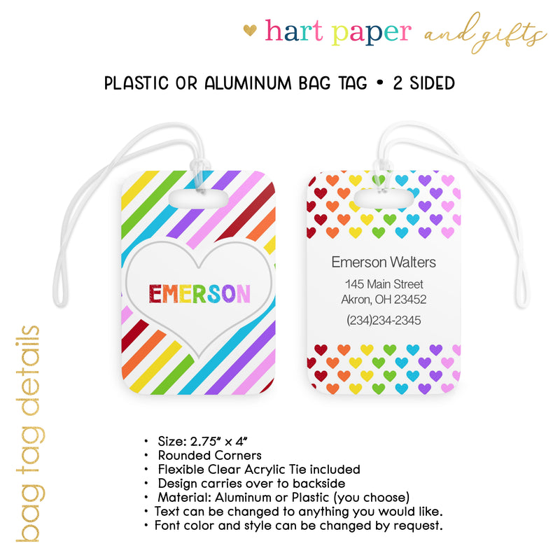 Rainbow Hearts & Stripes Luggage Bag Tag Personalized Custom