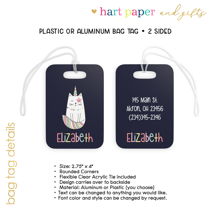 Cat Unicorn Caticorn Luggage Bag Tag Personalized Custom