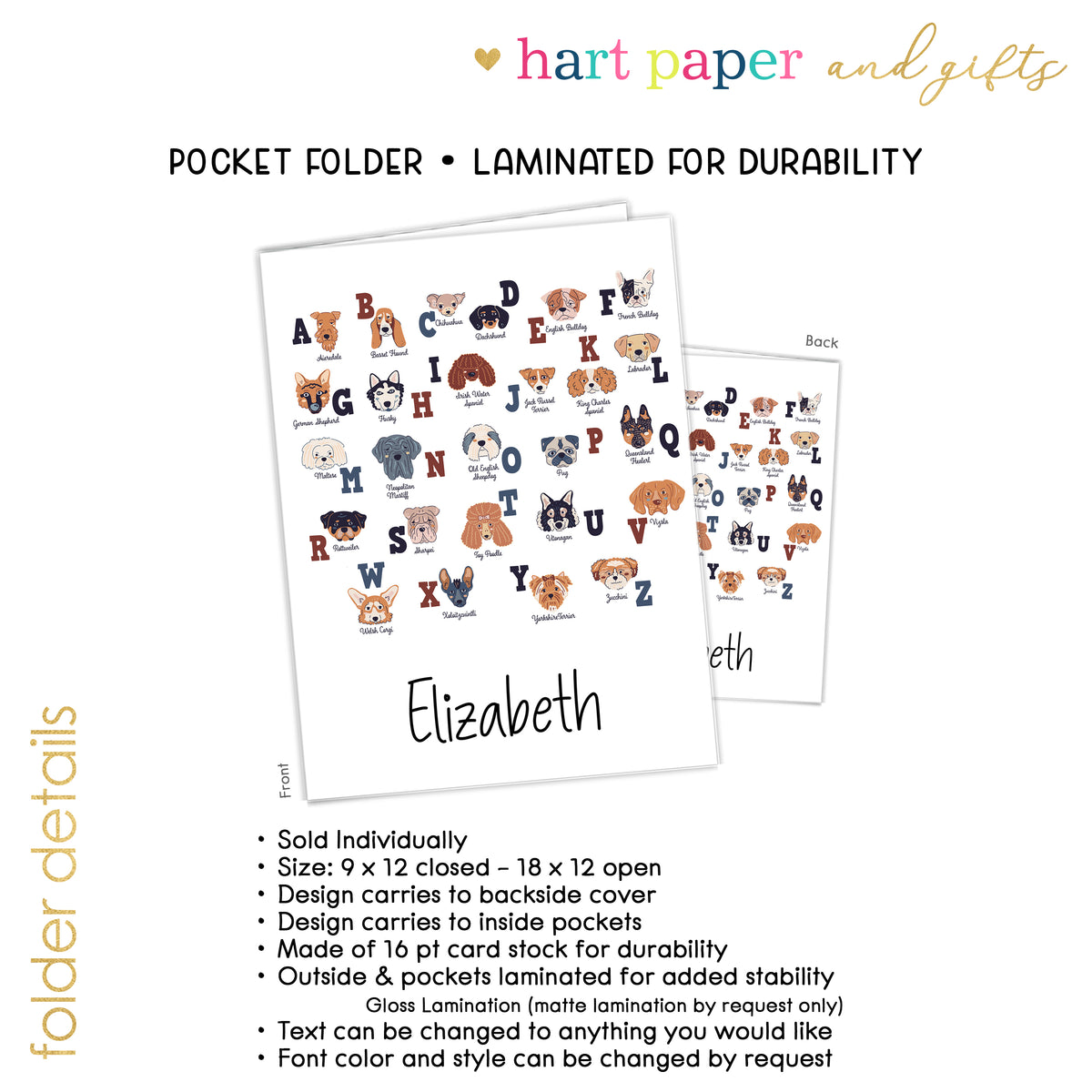 Alphabet Dogs Personalized Custom 2-Pocket Folder • School Office Supplies