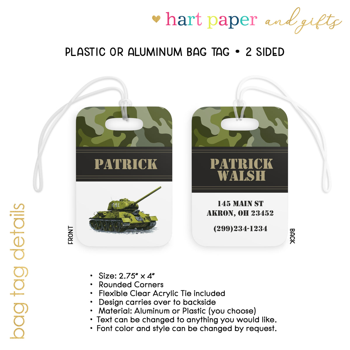 Army Tank Military Luggage Bag Tag Personalized Custom