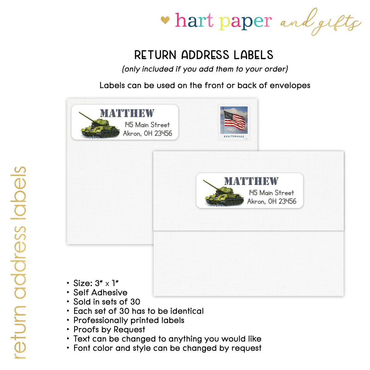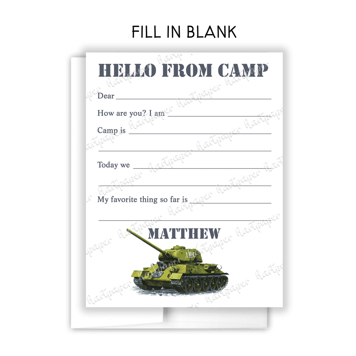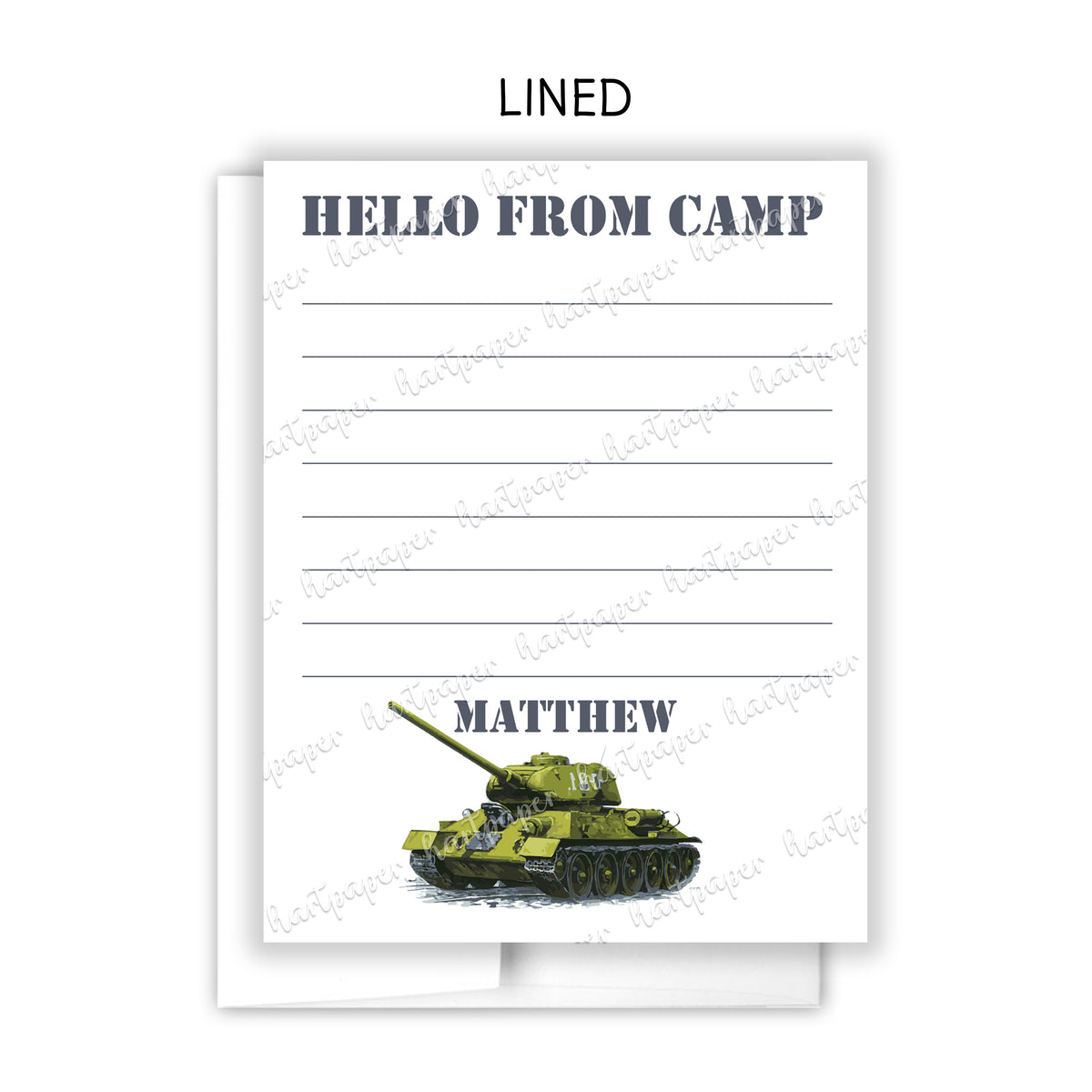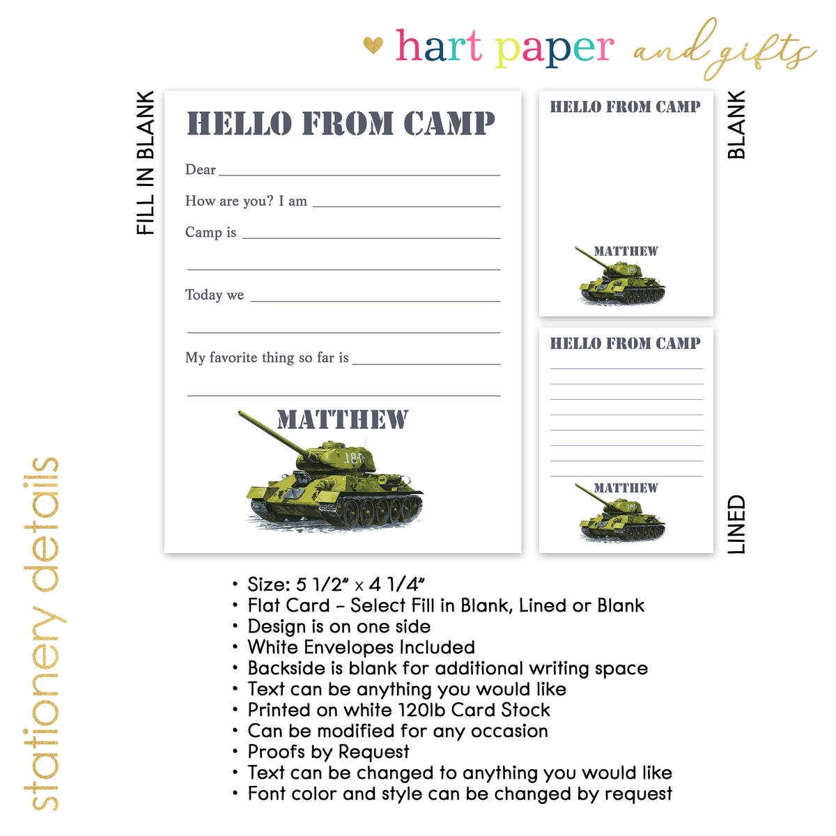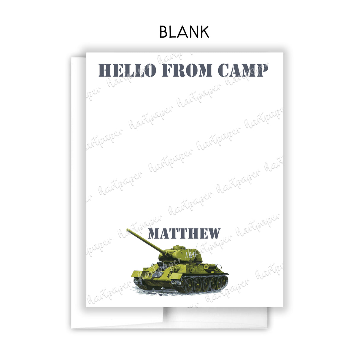 Army Tank Summer Camp Camping Note Cards Stationery Custom Personalized • Fill in Blank, Lined or Blank Cards