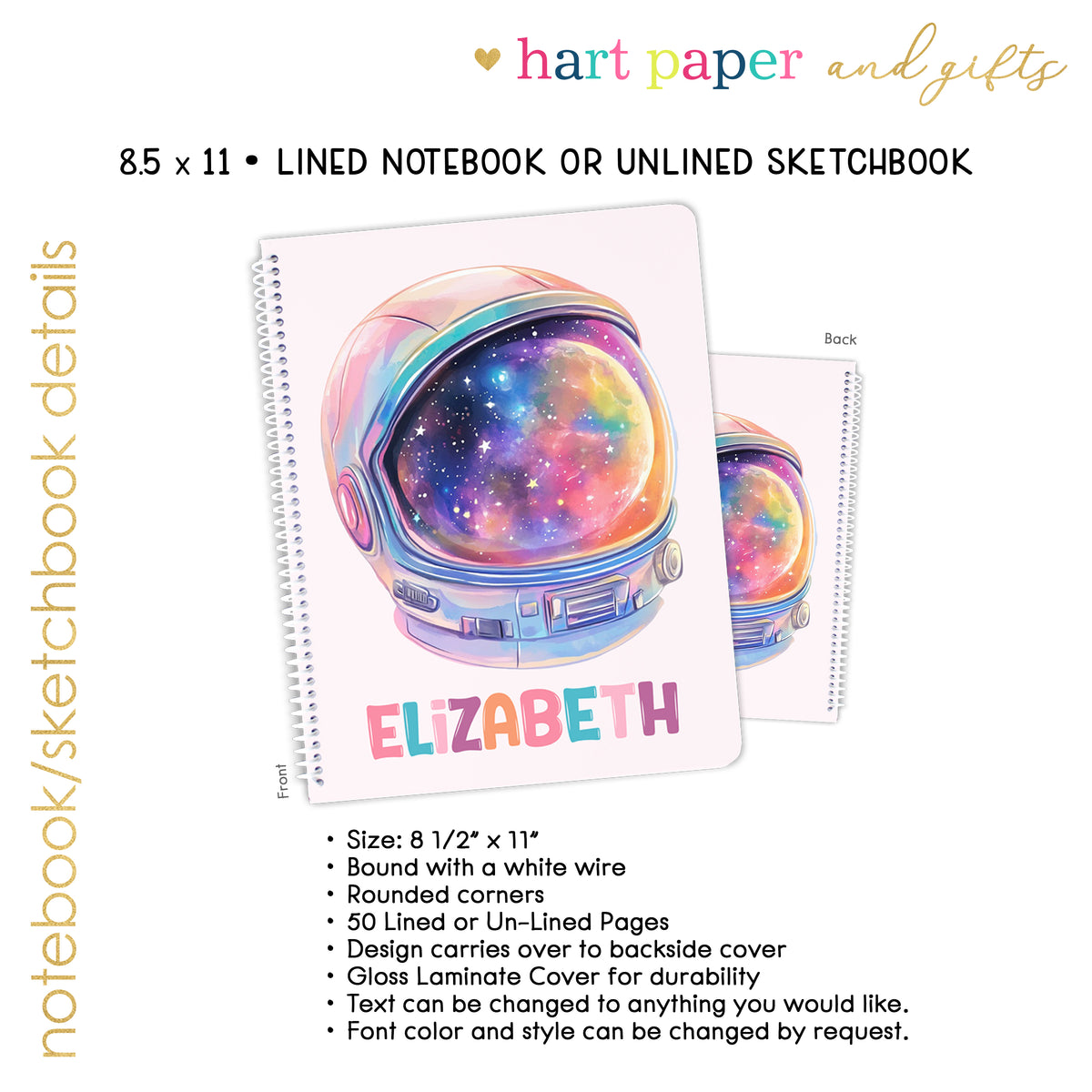 Astronaut Galaxy Stars Space Personalized Custom Notebook or Sketchbook • School Office Supplies