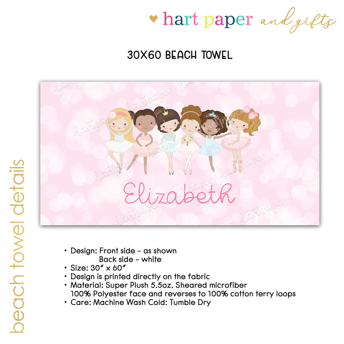 Ballerina Ballet Personalized Beach Towel • Custom 30x60 Swimming Swim Bath Bathroom Pool