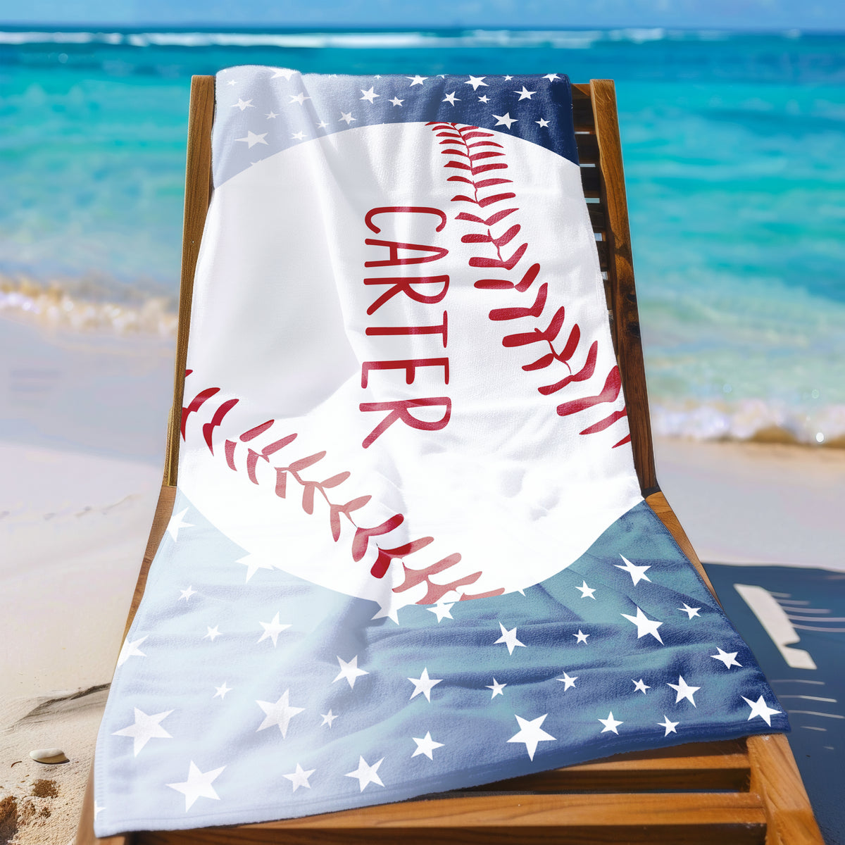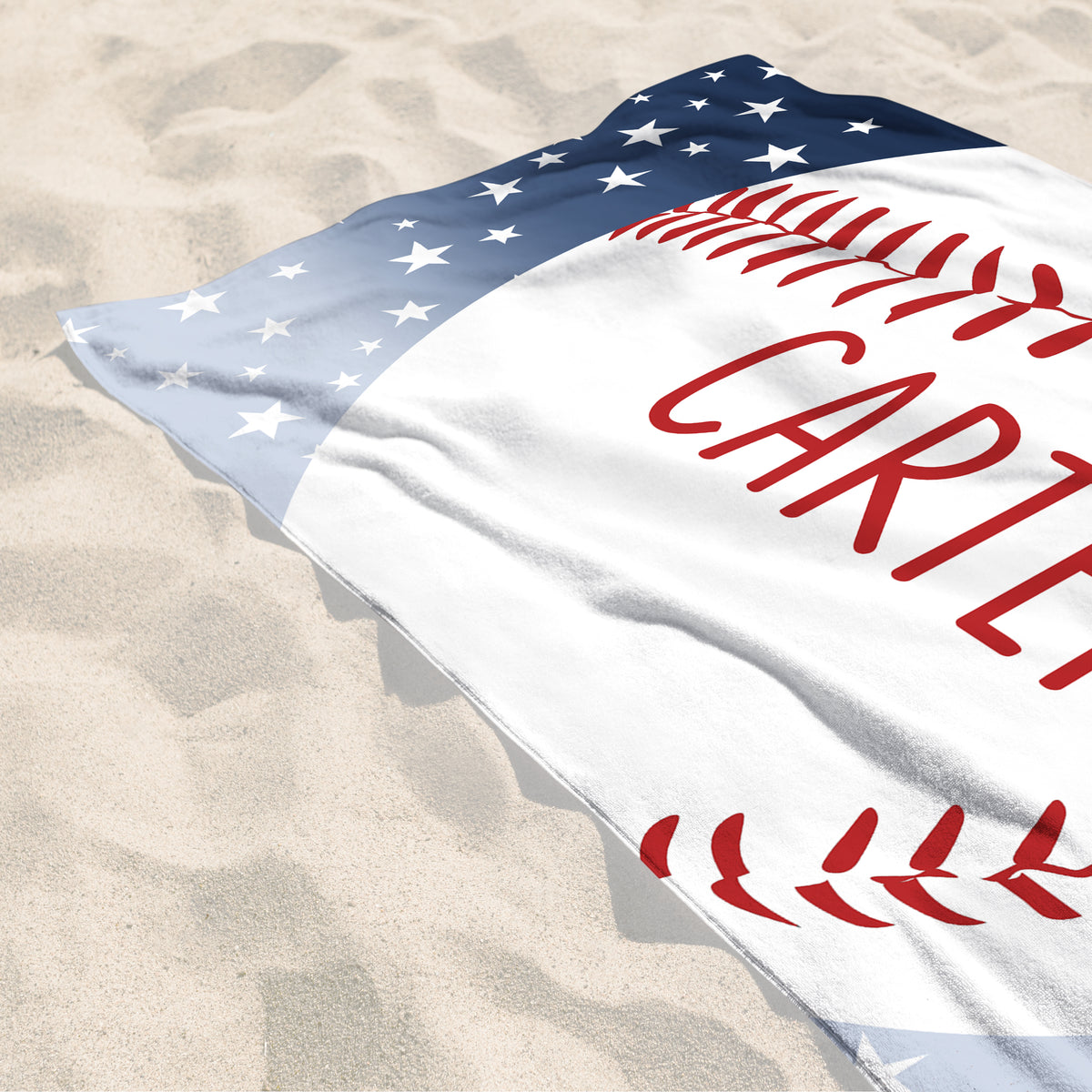 Baseball Sports Personalized Beach Towel • Custom 30x60 Swimming Swim Bath Bathroom Pool