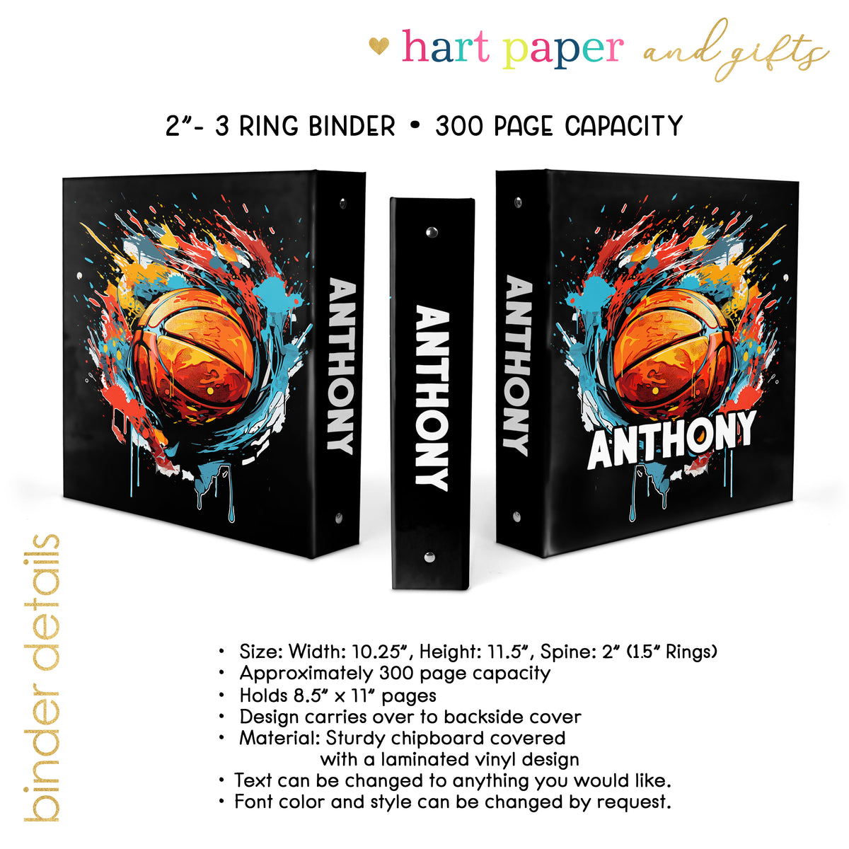 Basketball Sports Personalized Custom 2" 3 Ring Binder • School Office Supplies