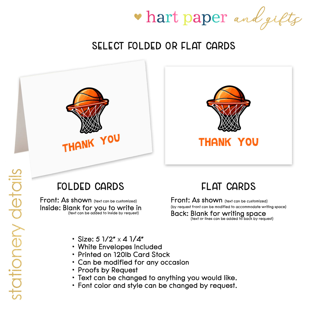 Basketball Thank You Cards Note Card Personalized Custom Stationery • Flat or Folded