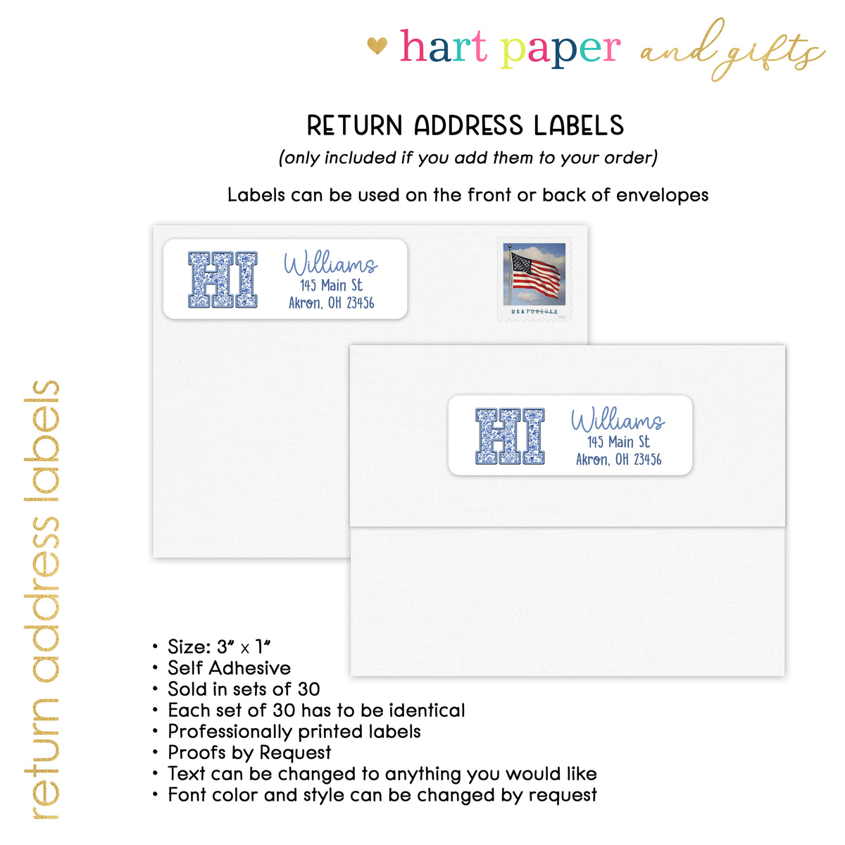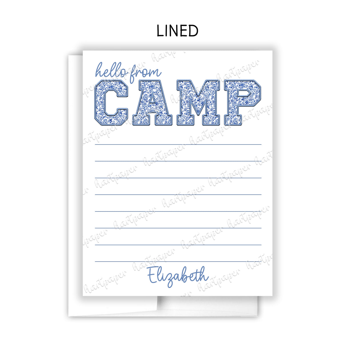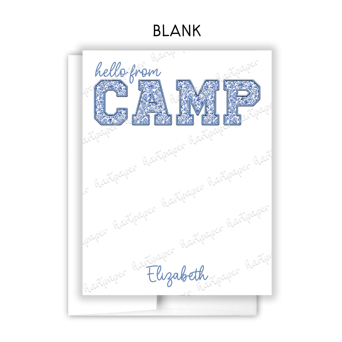 Blue Chinoiserie Hello Camp Summer Camping Note Cards Stationery Custom Personalized • Fill in Blank, Lined or Blank Cards