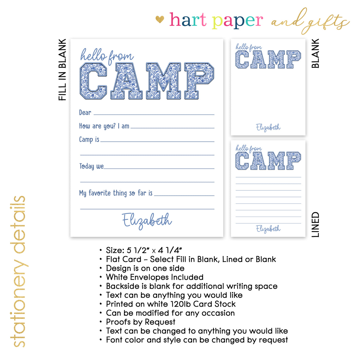 Cute & Custom Summer Camp Notecards for Kids – Fill-in-the-Blank, Blank & Lined Styles!